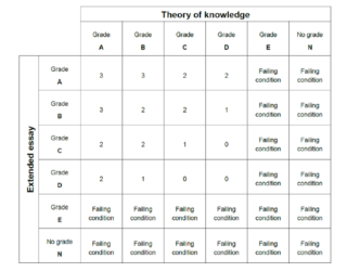 Alla olevasta kaaviosta näet EE:stä ja ToK:sta saatavissa olevat lisäpisteet. Diplomin saadakseen opiskelijan on saavutettava minimisuoritustaso Extended Essayssa sekä ToK:ssa: